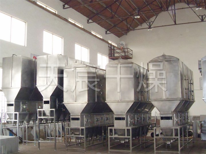 沸騰幹燥,又稱流化床(chuáng),它是由空氣過濾(lǜ)器、加熱器、沸(fèi)騰床(chuáng)主(zhǔ)機,旋風分離器,布袋除塵器、高(gāo)壓離心風機、操作台組成,由於幹燥(zào)物料的性質不同,配套除塵設備時,可按需(xū)要考慮,可同時選擇旋風分離器、布袋除塵器,也可選擇其中一種,一般來說比重(chóng)較大的如衝劑及顆粒料幹(gàn)燥隻(zhī)需選擇旋風分離器,比重較輕的小顆粒(lì)狀和粉狀物料需配套布袋除塵器,並備有氣力送料裝置及(jí)皮帶輸送機供選擇。